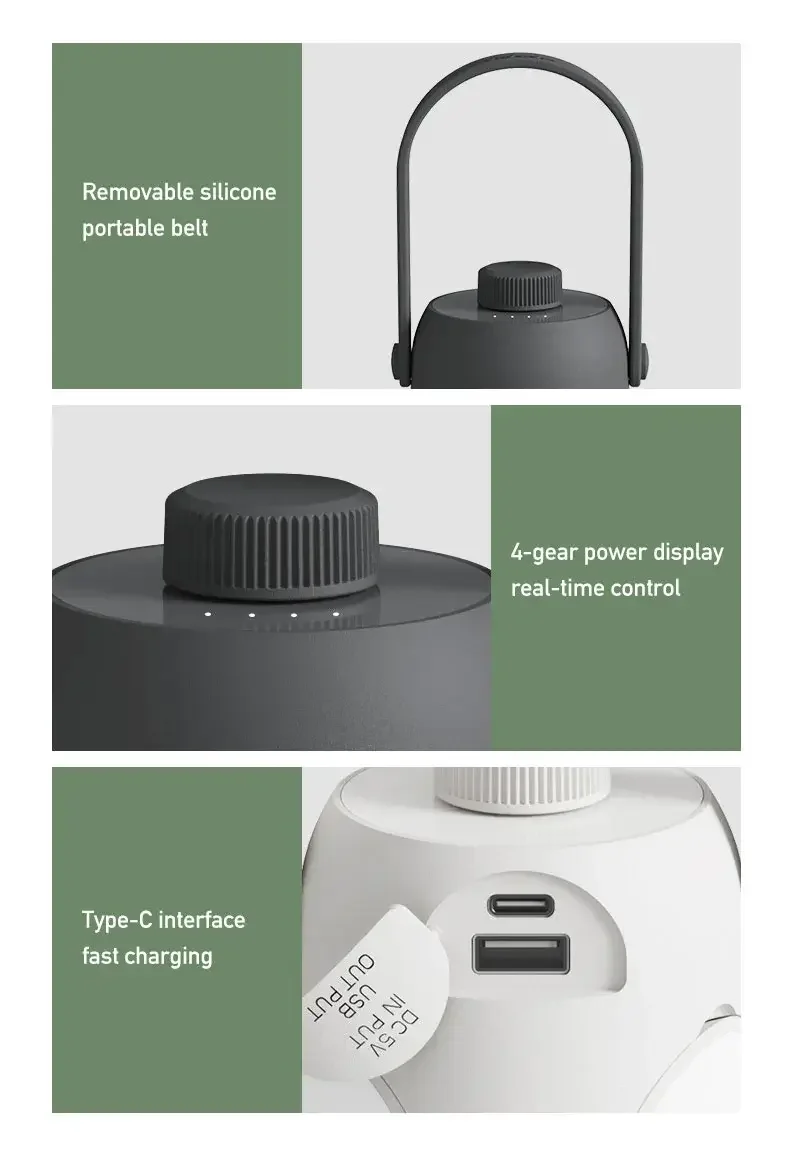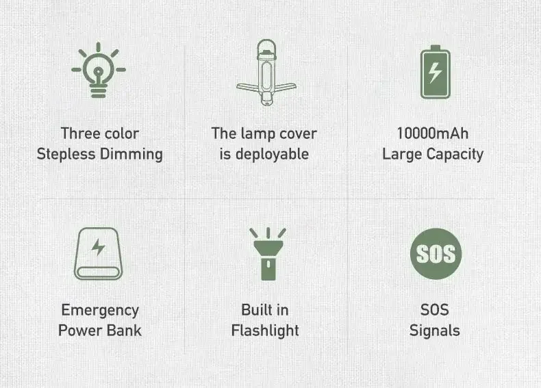 Deze opvouwbare campinglamp is draagbaar en op te hangen, met drie kleuren traploos dimmen en een lange batterijlevensduur tot 80 uur. De lamp heeft ook een stroomindicator, ingebouwde zaklamp en SOS-functie, waardoor het een uitstekende keuze is voor buitenactiviteiten.